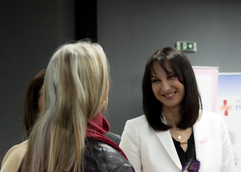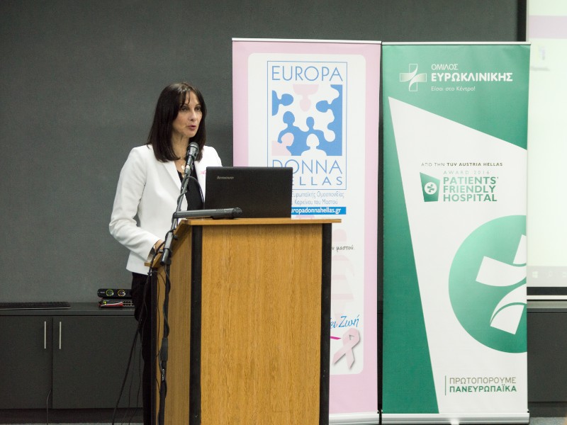 - κ. Φιορίτα Πουλακάκη, Διευθύντρια Χειρουργικής κλινικής Μαστού Ευρωκλινικής Αθηνών και Εθνική Αντιπρόσωπος της Europa Donna Hellas, ” Πρόληψη και νεότερες θεραπείες στον καρκίνο του Μαστού”