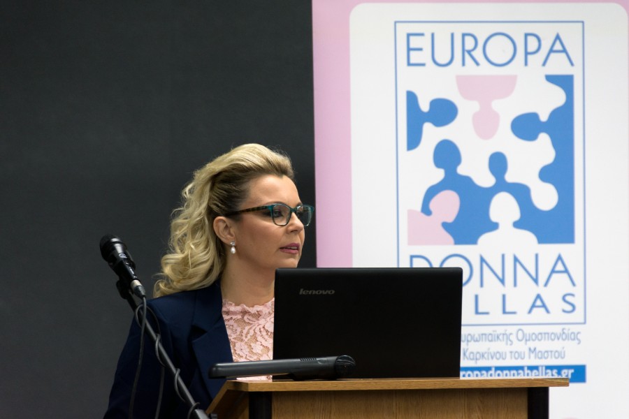 Όταν μια ζωή σώζεται πρέπει η ασθενής όχι απλά να ζήσει αλλά να ζήσει καλά. Διεθνείς μελέτες τεκμηριώνουν πως με την προώθηση του πρότυπου μοντέλου συντηρητικής αντιμετώπισης επιτυγχάνεται η αποτελεσματική μείωση της σπατάλης του κόστους για την κρατική υγεία, για τις ασφαλιστικές εταιρείες αλλά και για τις οικογένειες των πασχόντων που πληγώνονται οικονομικά για να αντιμετωπίσουν τα έξοδα που προκύπτουν μετά από το χειρουργείο μαστού.” Η κα Φιορίτα Πουλακάκη, Διευθύντρια Χειρουργικής κλινικής Μαστού Ευρωκλινικής Αθηνών και Εθνική Αντιπρόσωπος της Europa Donna Hellas, αναφέρθηκε στην πρόληψη και τις νεότερες θεραπείες στον καρκίνο του Μαστού, επισημαίνοντας ότι “πρέπει να υφίσταται πρωτογενής πρόληψη μέσα από τη διατροφή, την άσκηση και τις αλλαγές στον τρόπο ζωής όως τη διακοπή του καπνίσματος. Θα πρέπει ναπ καταρχήν να αποτρέψουμε τη δημιουργία” εξήγησε και να προγραμματίσουμε ένα τυπικό και τακτικό έλεγχο με εξειδικευμένες εξετάσεις απεικόνισης του μαστού, κλινική εξέταση από ειδικούς και διεπιστημονική προσέγγιση”.