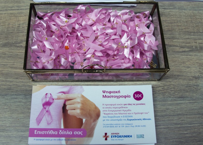 Η πρόληψη, η διάγνωση και η ορθή αντιμετώπιση του καρκίνου του μαστού μπορεί να καθορίσει την πορεία και τη ζωή των γυναικών που πάσχουν από τη νόσο. Αυτό ήταν το βασικότερο μήνυμα της εκδήλωσης ενημέρωσης που έγινε συμβολικά στις 25 Οκτωβρίου από την Ελληνική Συνεργαζόμενη Ομάδα Μελέτης Μαστού (ΕΛΣΟΜΑ) και υπό την αιγίδα της Europa Donna Hellas.