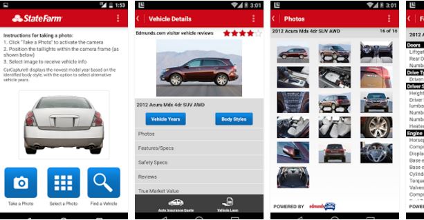 Αφορά όσους ψάχνουν να αγοράσουν νέο αυτοκίνητο. Η εφαρμογή CarCapture μπορεί να σας βοηθήσει να κερδίσετε χρόνο και πληροφορίες. Αν δείτε ένα αυτοκίνητο που σας αρέσει, πάρτε μια φωτογραφία του για να καταγράψετε τη μάρκα και το μοντέλο, να δείτε την αγοραία αξία (όπως καθορίζεται από Edmunds) και τις τοπικές αντιπροσωπείες που μεταφέρουν. Η εφαρμογή είναι δωρεάν και είναι διαθέσιμη σε όλους, όχι μόνο στους ασφαλισμένους της State Farm.