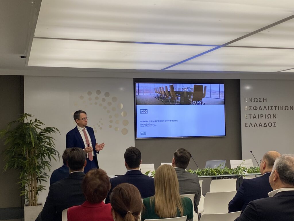 Μέλη και συνεργάτες του Συνδέσμου, είχαν την ευκαιρία να παρακολουθήσουν την εξαιρετικά ενδιαφέρουσα παρουσίαση του κ. Κώστα Βούλγαρη, FI Underwriting Manager MEDI, FL Manager ΑΙG Greece Branch, ο οποίος αναφέρθηκε στην αναγκαιότητα της συγκεκριμένης ασφαλιστικής κάλυψης, αναλύοντας :