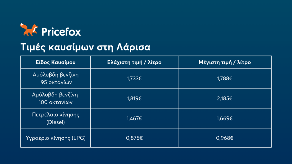Σε γενικές γραμμές δηλαδή, οι Λαρισαίοι αγοράζουν τα καύσιμα τους φθηνότερα απ’ ότι την ίδια περίοδο πέρυσι.