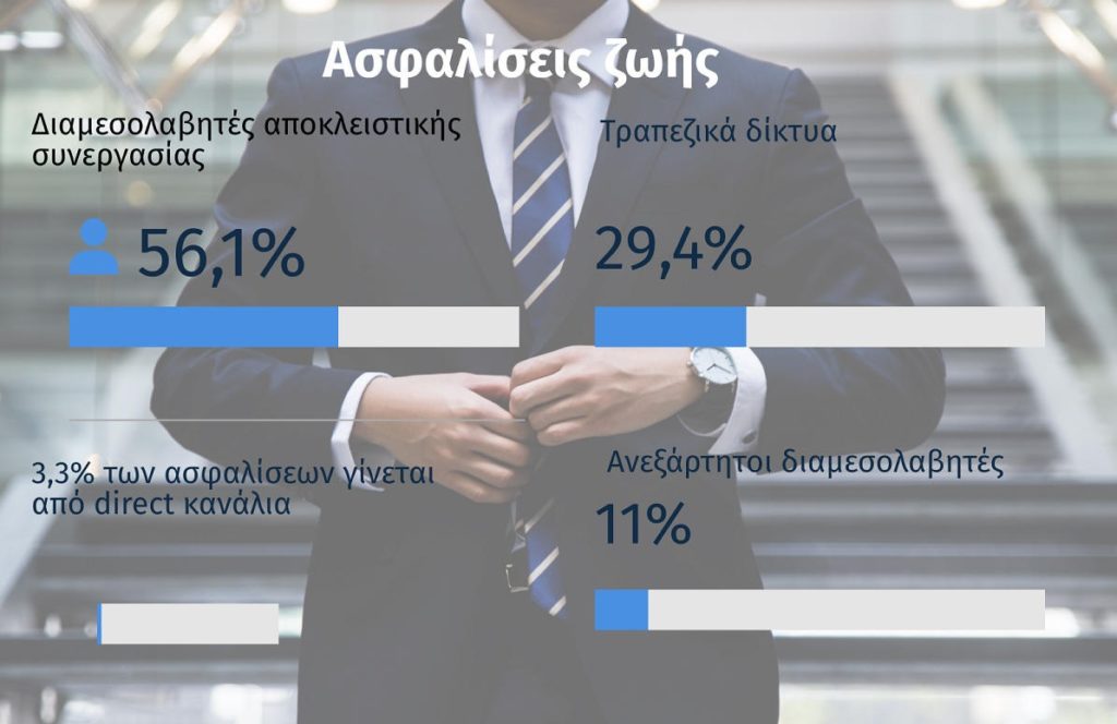 Τη μερίδα του λέοντος στην παραγωγή των ατομικών ασφαλιστηρίων ζωής έχουν οι διαμεσολαβητές αποκλειστικής συνεργασίας, οι οποίοι κατέχουν το 56,1% των ασφαλίστρων.