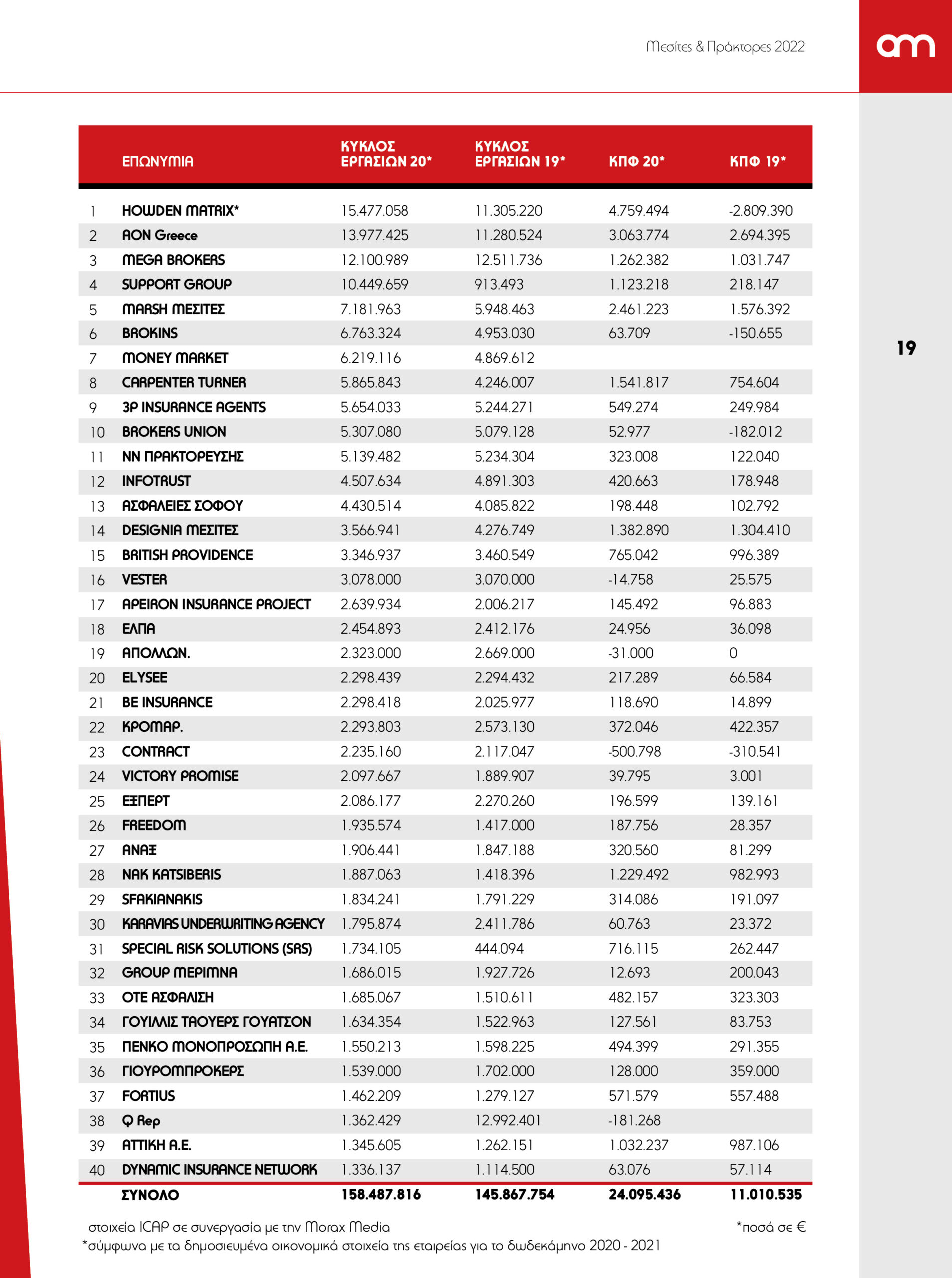 Μέσα στα 40 μεγαλύτερα γραφεία Ασφαλιστικής Διαμεσολάβησης συγκαταλέγονται: