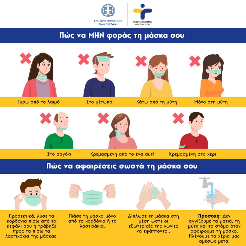Νέες οδηγίες σχετικά με τη χρήση της μάσκας ανήρτησε στα κοινωνικά μέσα δικτύωσης το υπουργείο Υγείας.