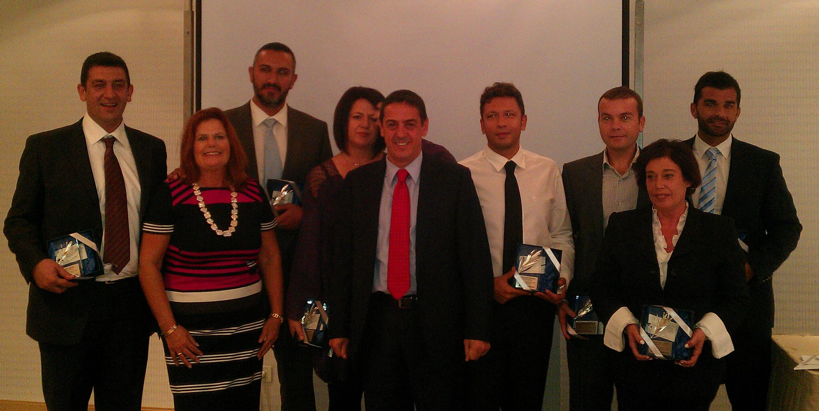 Γεωργία Καρυωτάκη – 1η (γραφείο Ηρακλείου), Θρασύβουλο Παρασκάκη – 2ο (γραφείο Χανίων), Στέλλα Ψυχουντάκη – 3η (γραφείο Χανίων), Κώστα Ροδινό – 4ο (γραφείο Ρεθύμνου), Ελευθέριο Τρουλλινό – 5ο (γραφείο Χανίων), ενώ βραβεύθηκαν και οι Πολύδωρος Γάσπαρης ως 1ος νέος ασφαλιστικός σύμβουλος (γραφείο Ρεθύμνου) και Γιάννης Πατεράκης ως 1ος unit manager (γραφείο Ρεθύμνου). Στη φωτογραφία, οι βραβευθέντες με την W. de Bruijn και τον Στ. Λουραντάκη.