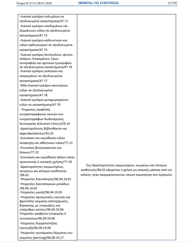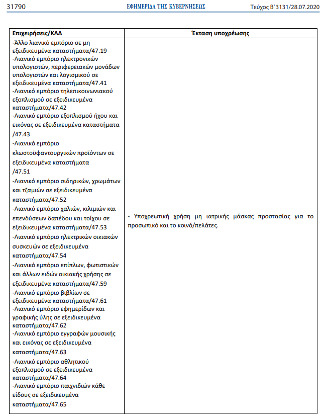 Όπως αναφέρεται στην απόφαση το μέτρο αφορά εμπορικές επιχειρήσεις, επιχειρήσεις παροχής υπηρεσιών, χώρους γραφείων (δημοσίων υπηρεσιών ή ιδιωτικών επιχειρήσεων) και άλλους χώρους συνάθροισης κοινού στους οποίους και “επιβάλλεται η υποχρέωση χρήσης μη ιατρικής μάσκας στο πλαίσιο των έκτακτων μέτρων αντιμετώπισης του κινδύνου διασποράς του κορωνοϊού”.